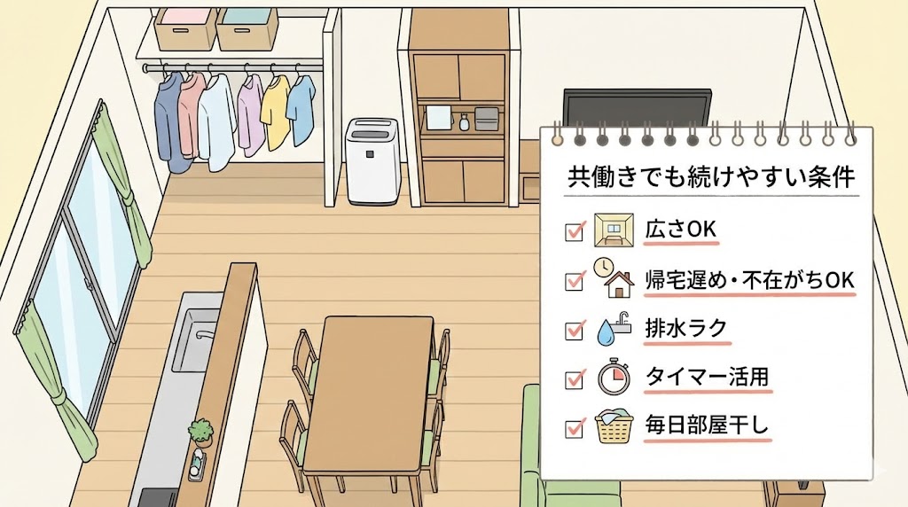 まとめ:共働きの部屋干しと除湿空気清浄機の「続く・続かない」を分けるもの