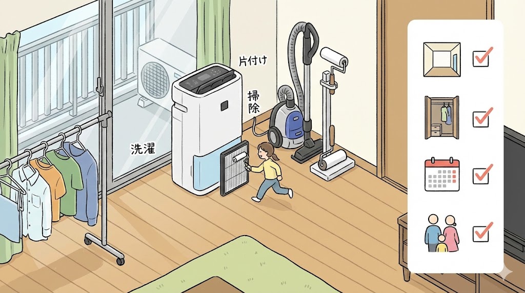 除湿空気清浄機の手入れが、片付けが後回しな日ほど止まりやすいケース
