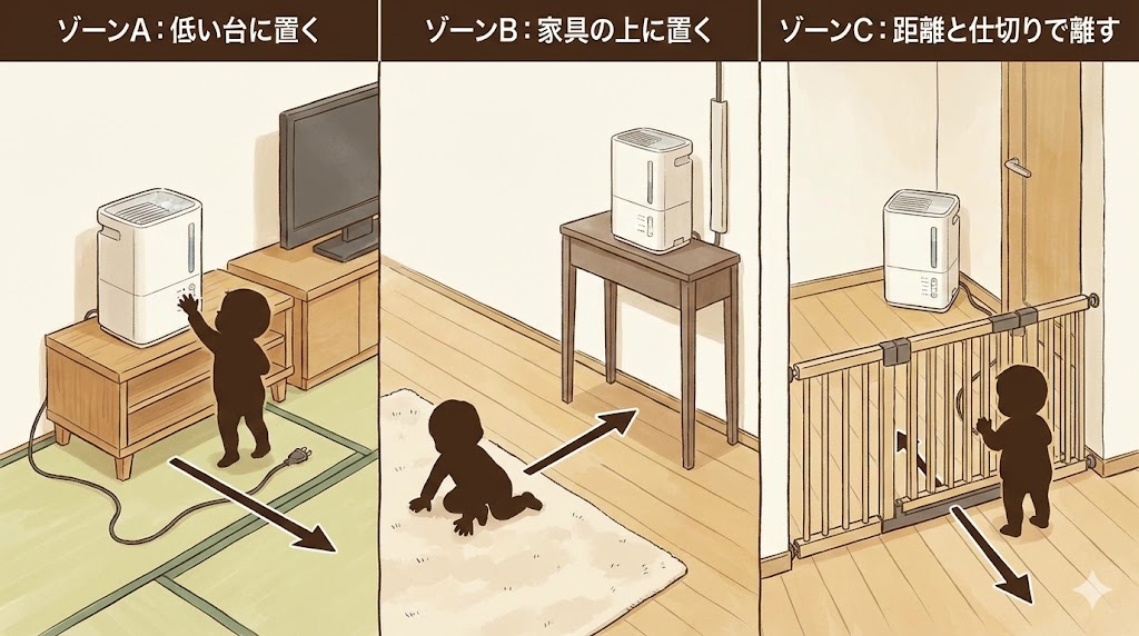 - 子どもの動きと加湿空気清浄機の置き場所がぶつかりやすい条件