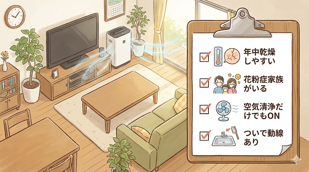 • 加湿空気清浄機が置物になりやすく、買わない選択も出やすい暮らしの条件